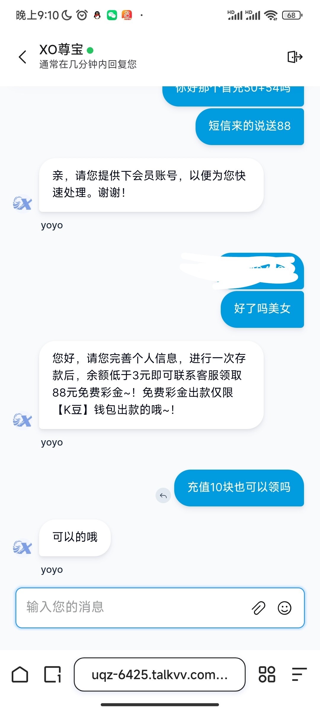 k豆有通道可以充10块输到3块以下就能领88,只能k豆出款