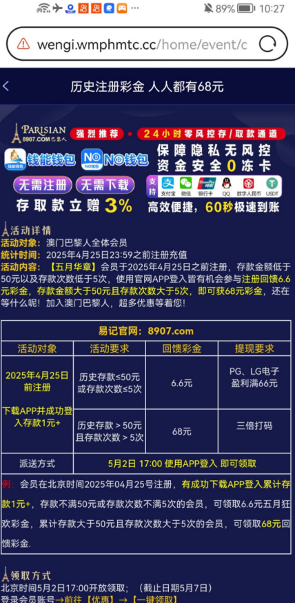 历史用户存款过的,登录直接领,禁止充值。