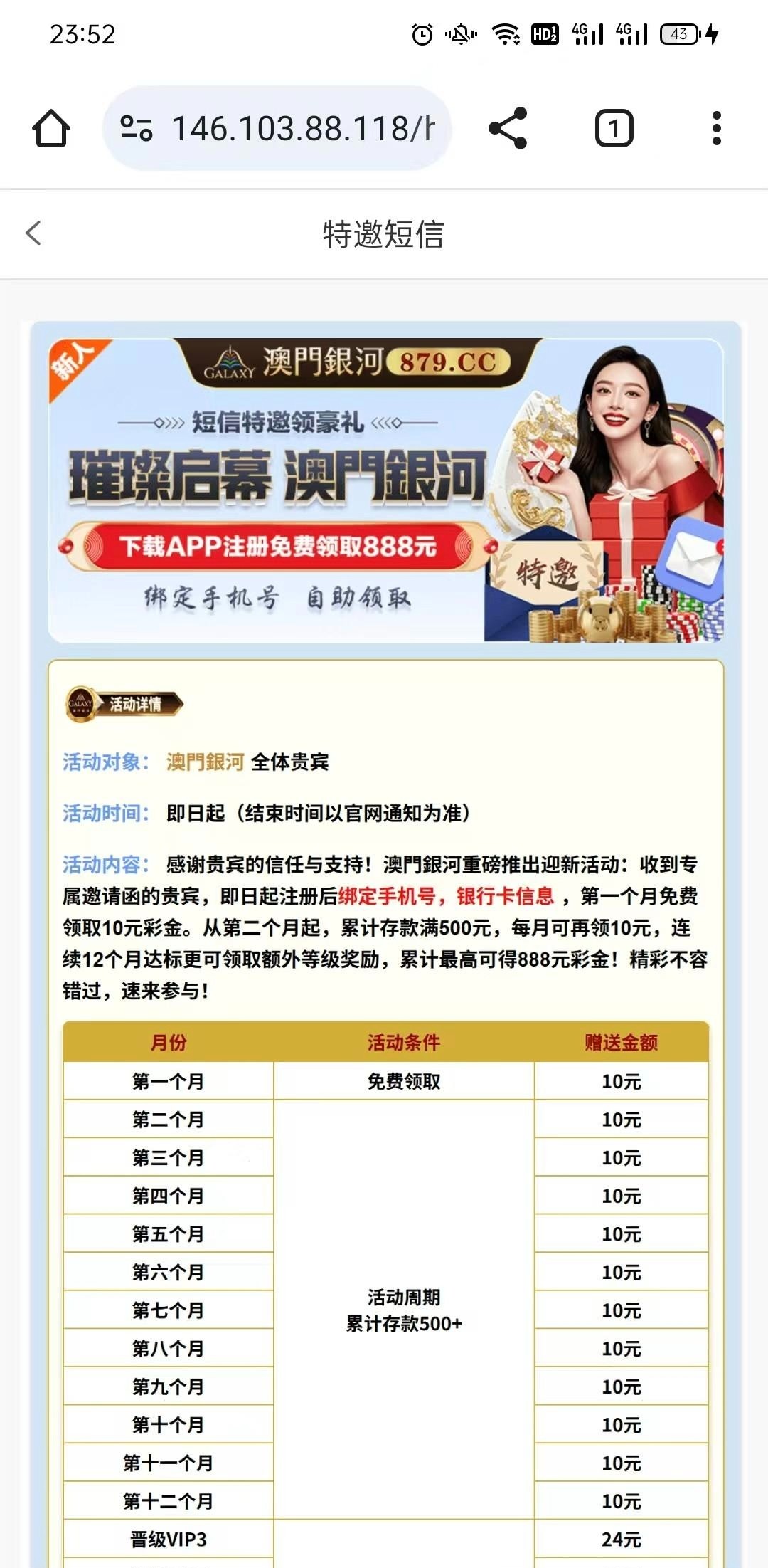 【银河879】短信彩金