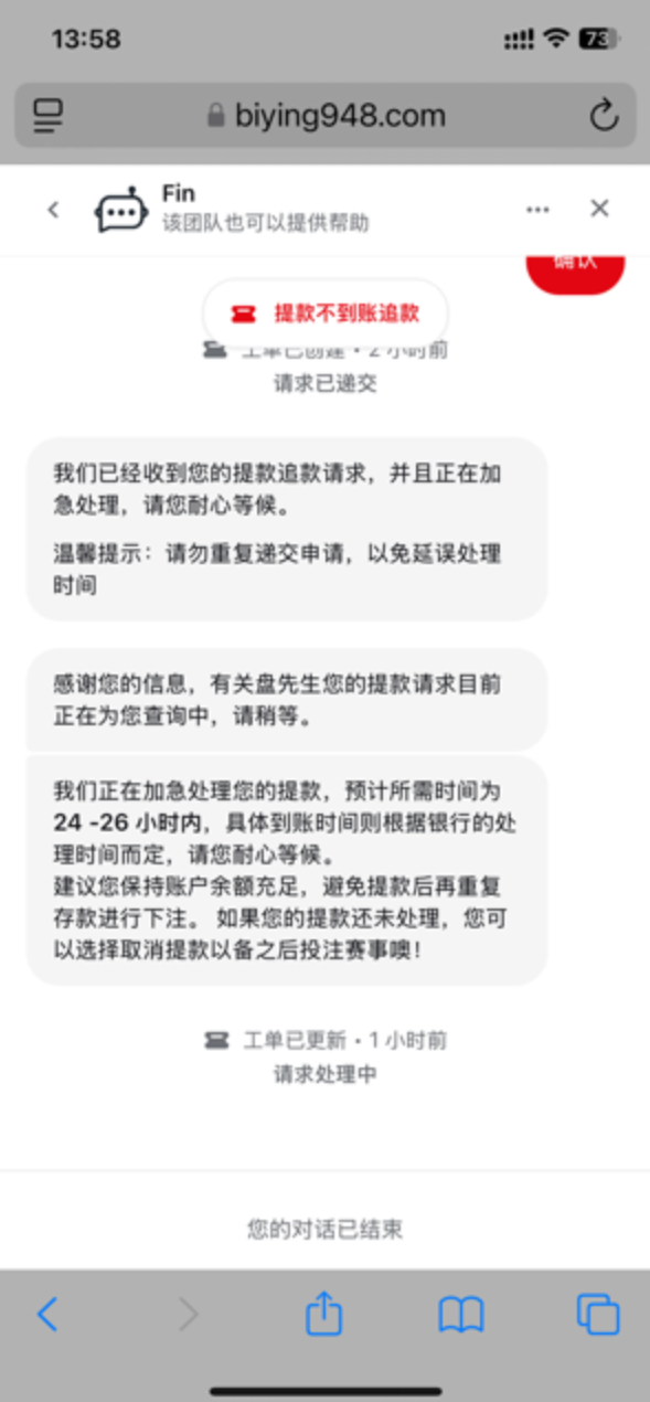 biying948,这必赢平台能出吗?首充取都只能银行出,连个任何钱包都没有的,在线客服也没有,通过机器人提交单才有人回复,哪位知道这台黑吗?