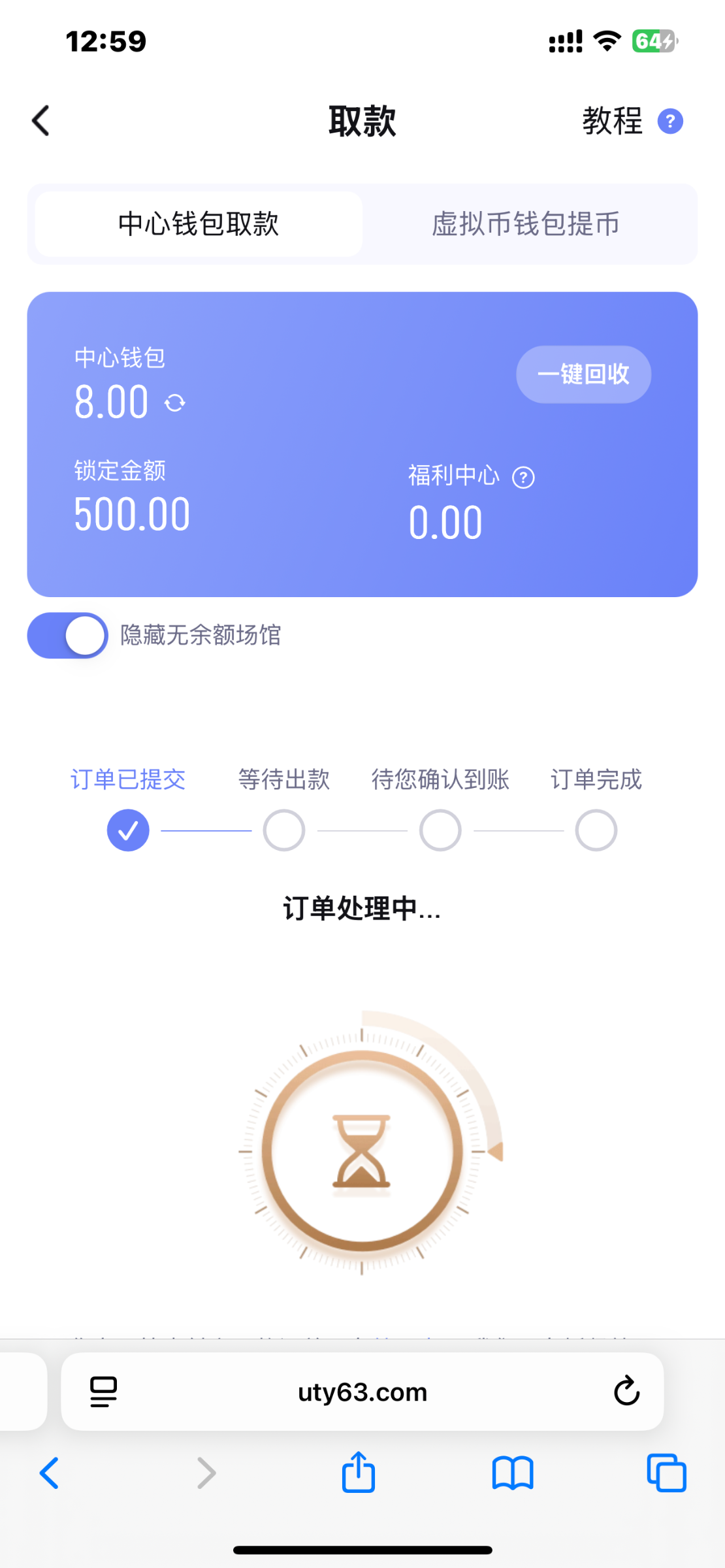 十二点多提交的  现在快四点了还没有到账