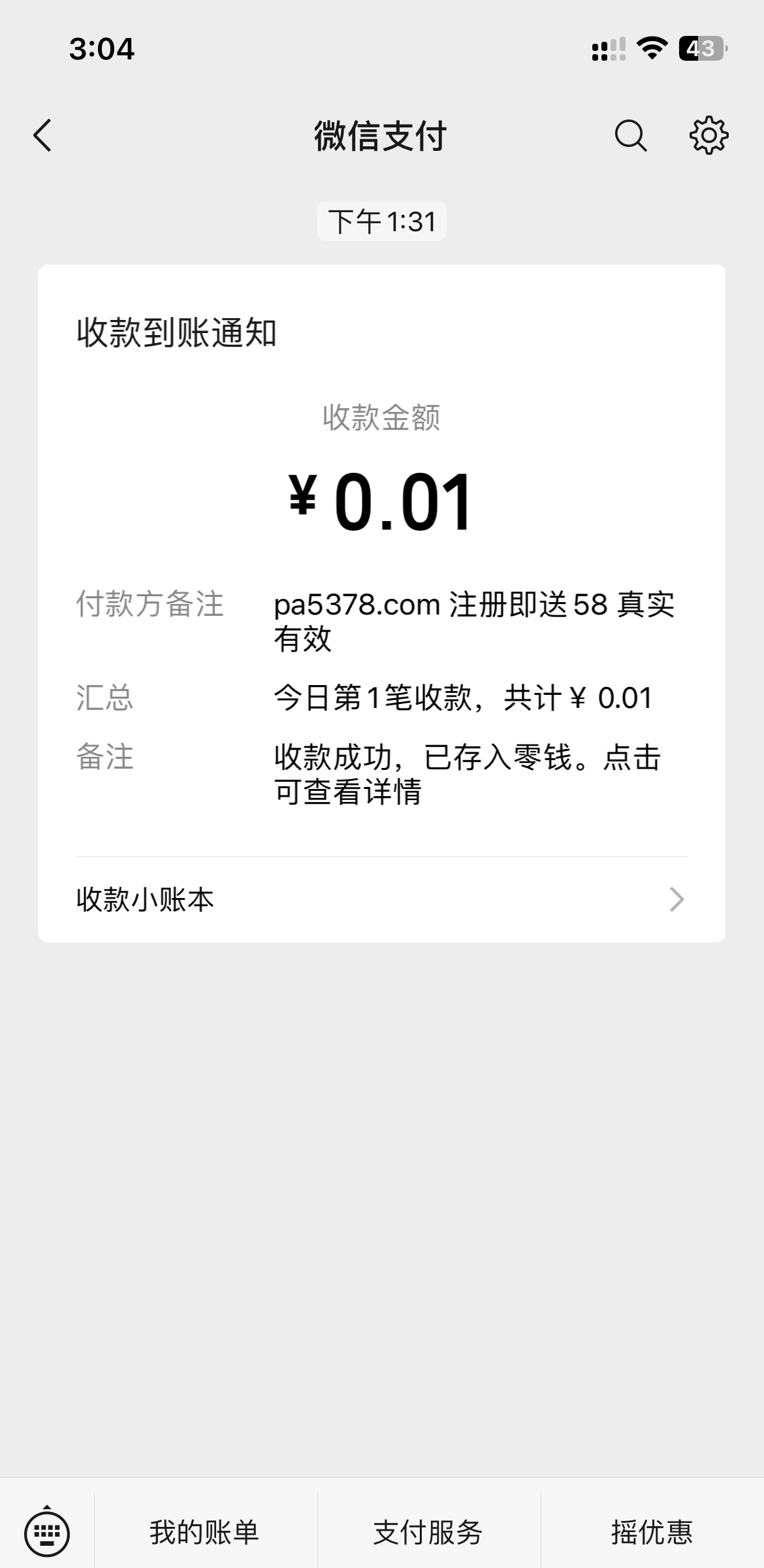 我说呢只提过支付宝没弄过微信。