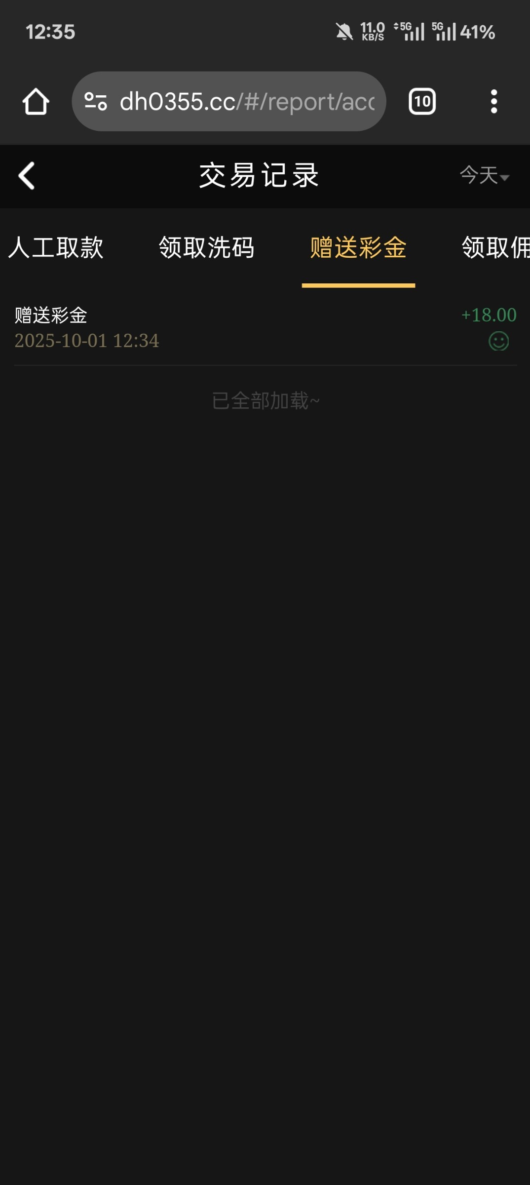 今天一个彩金没领到