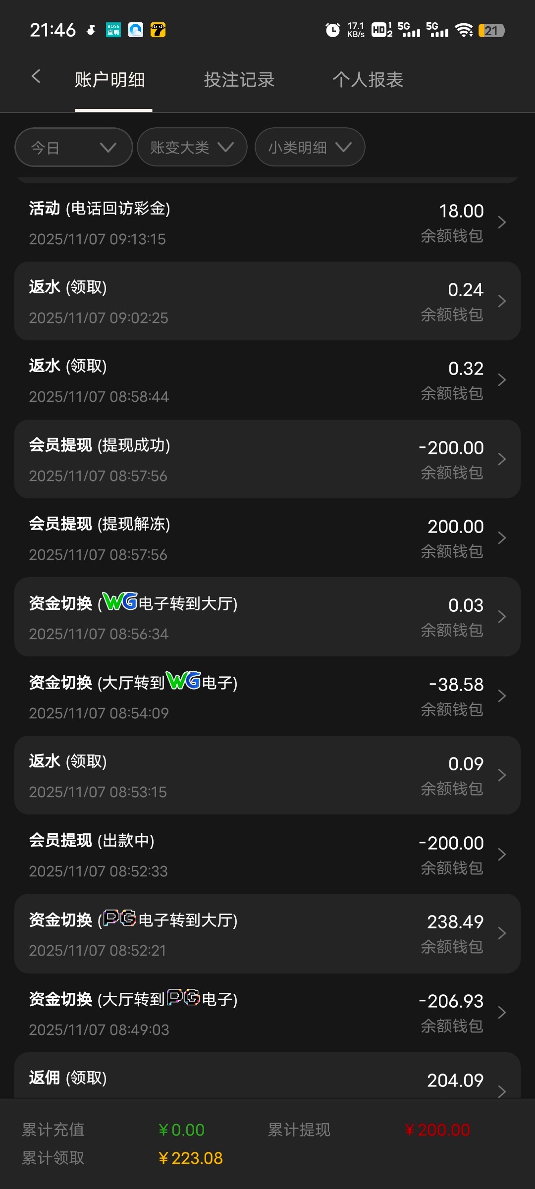 张子强 23年10月份注册的号,去年充了至少5万,今年一分钱没存过,给了88