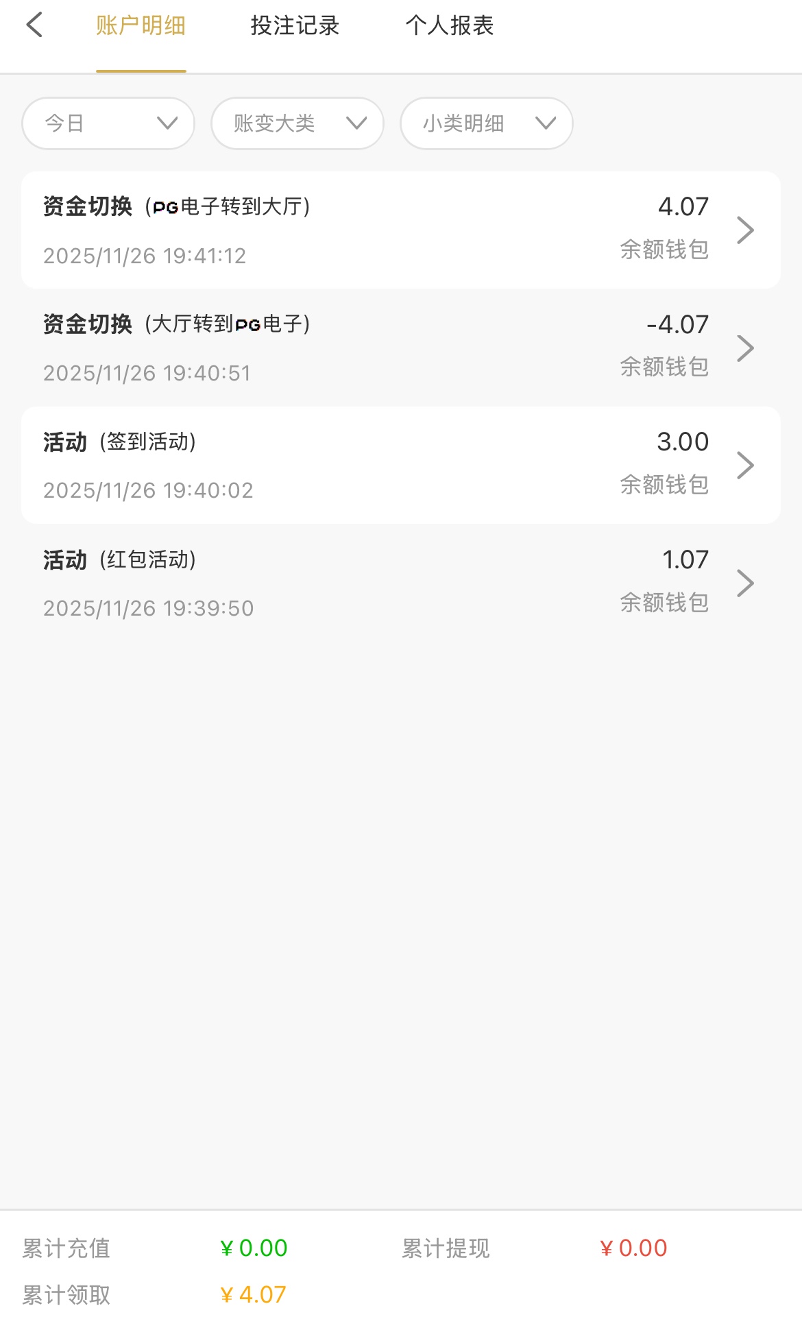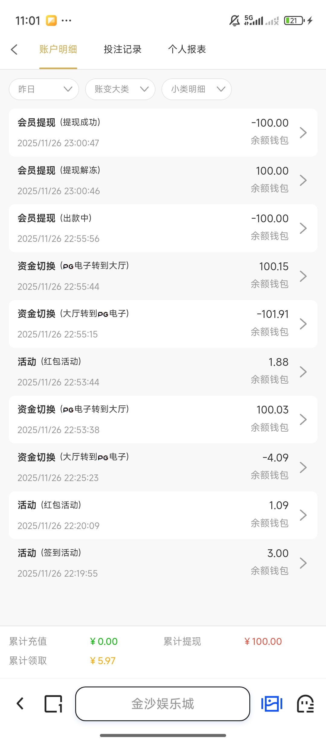 多谢    出100    2毛胡20      6毛胡60    然后差点没了    又胡到70又差点没了      然后1.4剩10块到70  然后剩40    1.4没胡60    100整提        3  4分钟到账