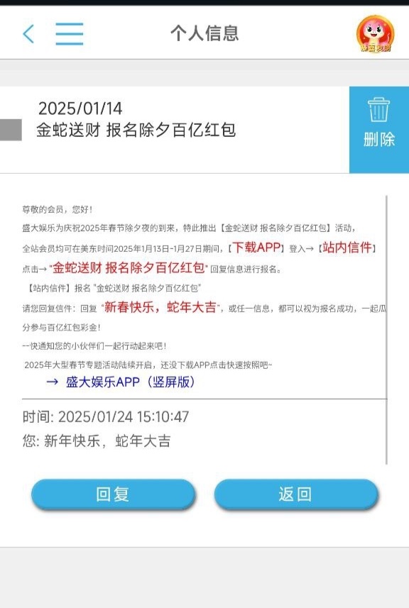老用户有号登录站内信报名瓜分彩金活动,然后坐等瓜分彩金即可,最低8彩金,限制自行查看。