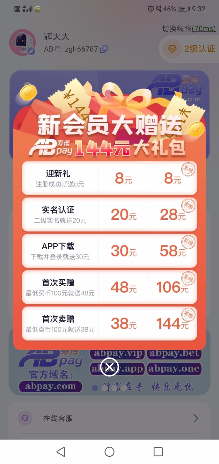 https://abpay3344.com/login 钱包链接先下载app 然后去hy电玩城找到这个钱包充值链接随便点一个金额跳转浏览器打开注册 设置好了账号密码在去钱包app登录就可以了 开户送8块钱 实名认证送20 下载app送30 30问客服到账就可以去充值了