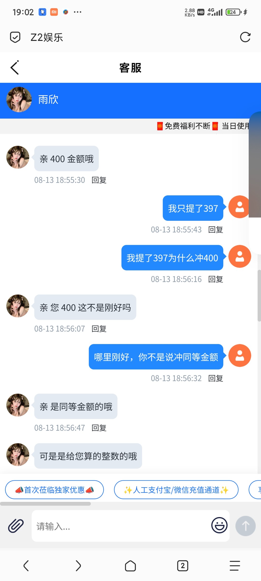 z2娱乐,正常充值100提400不给出,ip异常充值同等金额,黑